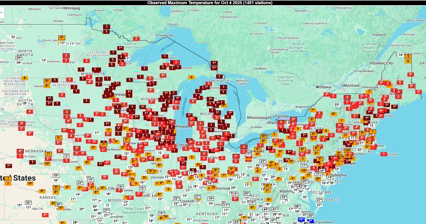 Records were plentiful over recent days in the Midwest and Northeast U.S., in addition to Canada. Minneapolis hit 91 on Saturday, among the numerous numbers that shouldn’t be occurring in October.