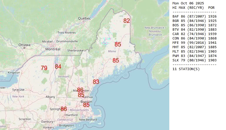 More is expected today, especially in New York and New England. Boston will be near record values if the forecast of 85 comes to pass.